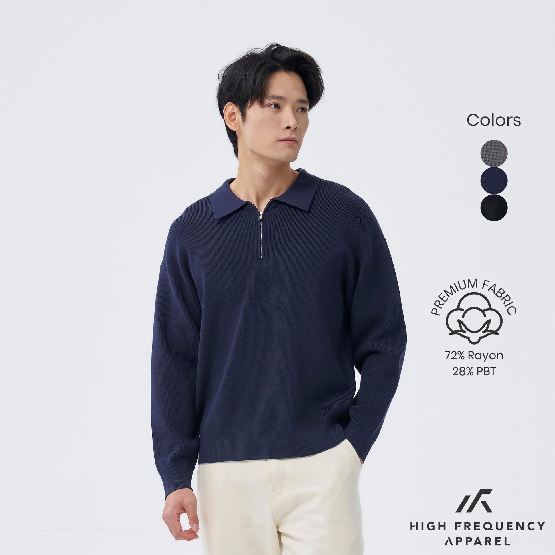 The HFA Men’s Long Sleeve Knitted Zip Polo is crafted from a luxurious knit blend (72% Rayon, 28% PBT), offering a smooth, breathable texture with natural stretch and shape retention. Designed with a modern zip-up placket and a clean polo collar, it brings a contemporary twist to a timeless classic.